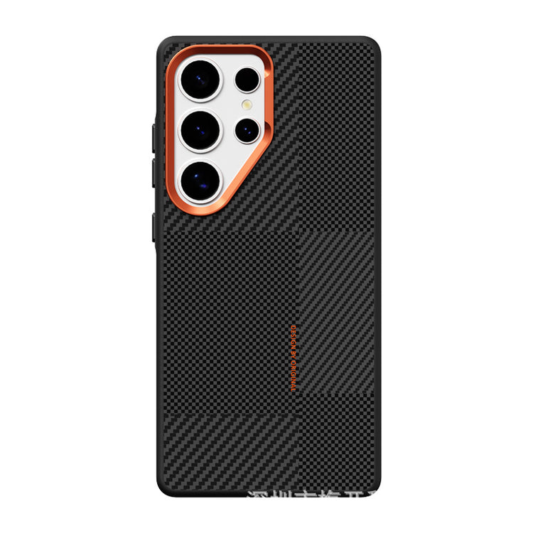 Built for impact, styled to stand out. The StrikeMesh Armor is made to match the power of your Samsung Galaxy S24 Ultra, combining rugged durability with a head-turning design. Its carbon-textured back gives you serious grip, while the bold orange camera frame keeps your lenses protected and your look on point. Slim, strong, and MagSafe-style accessory ready — this case is all about everyday performance with zero compromise.